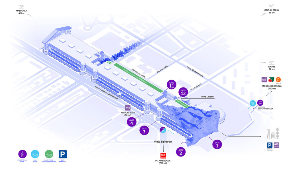 Allianz MiCo is right in front of the new Citylife district. In close proximity there are more than 1.900 sleeping rooms. Bars, restaurants and coffee houses are available within walking distance. The Citylife park is the ideal space where to spend some spare time. Three metro stops just nearby guarantee reachability.