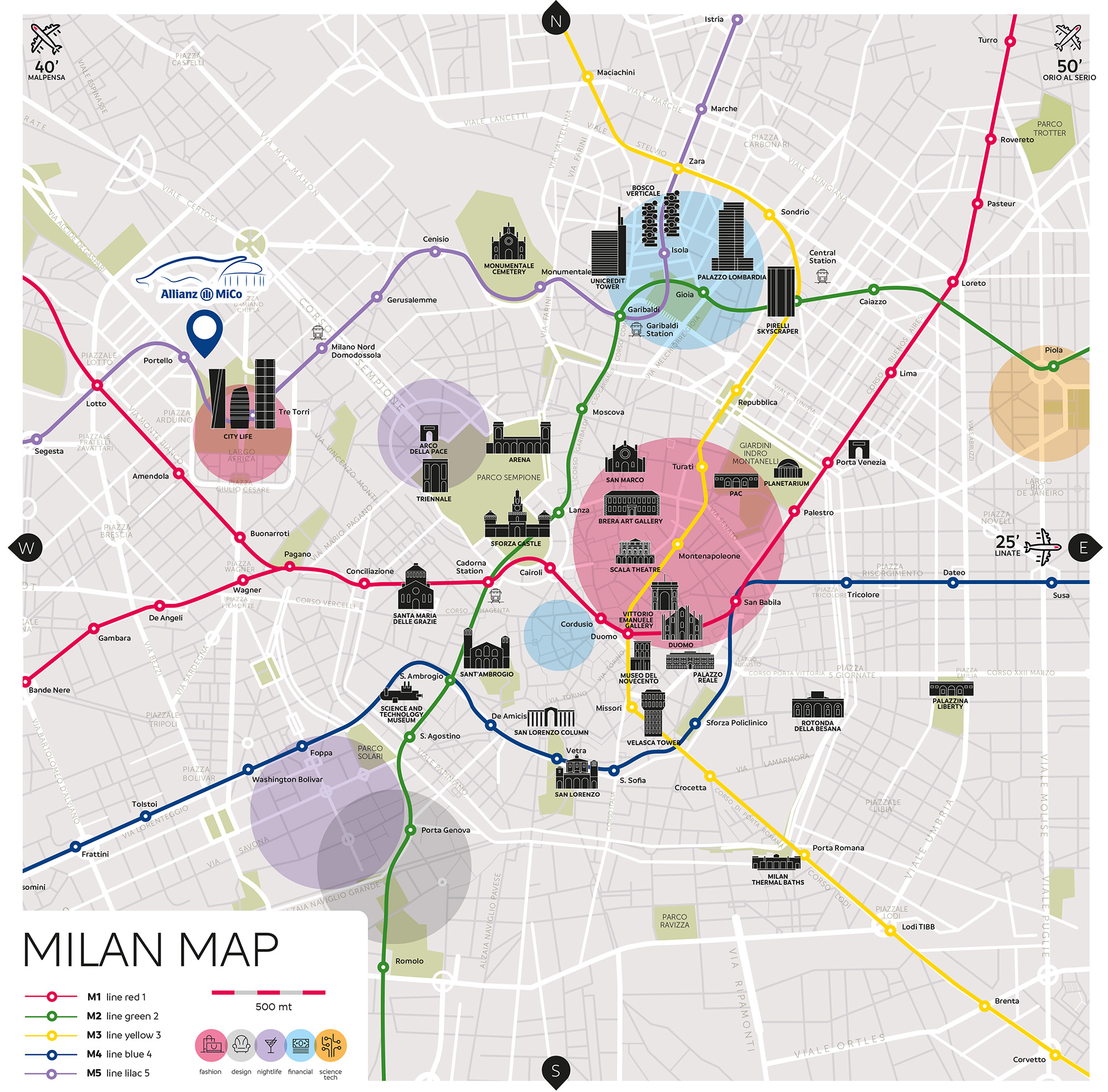 Allianz MiCo is right in front of the new Citylife district. In close proximity there are more than 1.900 sleeping rooms. Bars, restaurants and coffee houses are available within walking distance. The Citylife park is the ideal space where to spend some spare time. Three metro stops just nearby guarantee reachability.